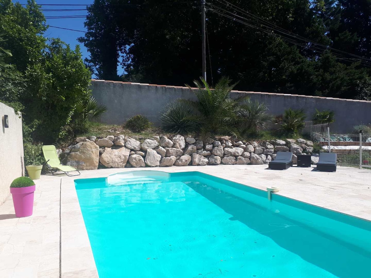 Mitoyen de la villa où nous vivons, vous profiterez de l'entrée et la vue sur les oliviers coté nord, tandis que nous donnons coté sud et piscine. Vous disposerez d'un logement climatisé avec cuisine équipée, grande salle de bain avec douche à l'italienne, une chambre ouverte avec rangements, et de la terrasse ombragée réservée pour le studio. Idéalement situé pour visiter la région, vous pourrez accéder à la piscine (l'été), profiter du jardin et y garer votre véhicule.