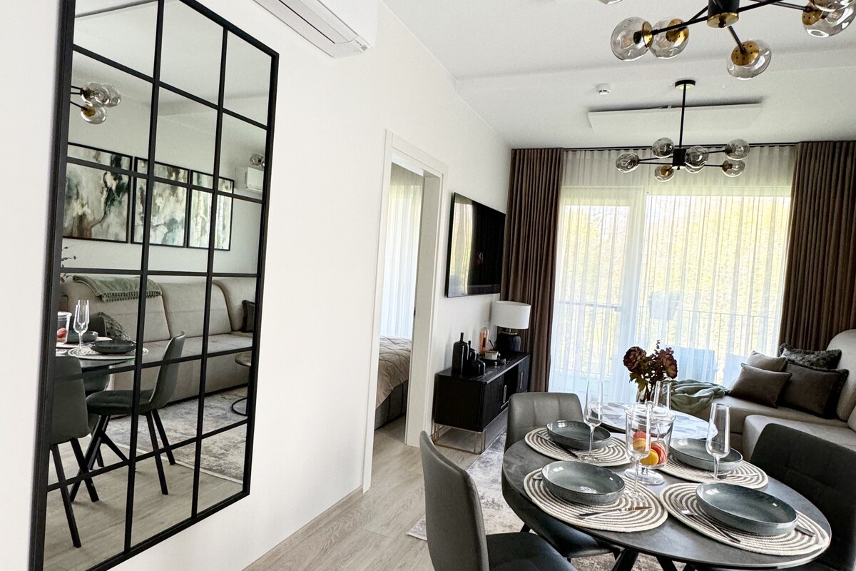 Apartman a „Hill Garden” rezidencián. A lakás berendezése során az egyik legfontosabb szempontunk az volt, hogy ötvözzük a funkcionalitást és a stílust. A hely ideális egy párnak és egy családnak, külön hálószobával és egy kanapéval a nappaliban, amely csak másodperceket vesz igénybe a felkészülés – meglepődtünk, hogy milyen könnyű összehajtogatni és kibontakozni. Várunk szeretettel Kunigiskesben, és meg vagyunk győződve arról, hogy szívesen visszatérnél!