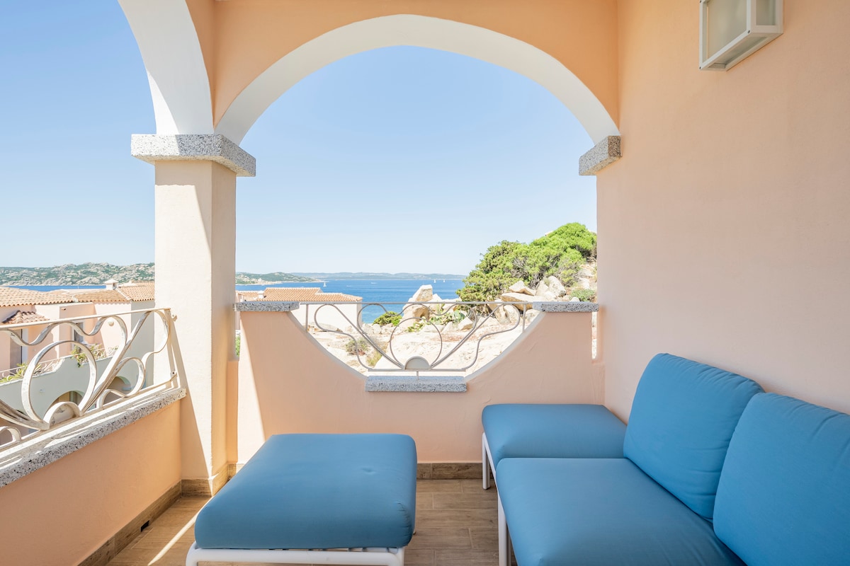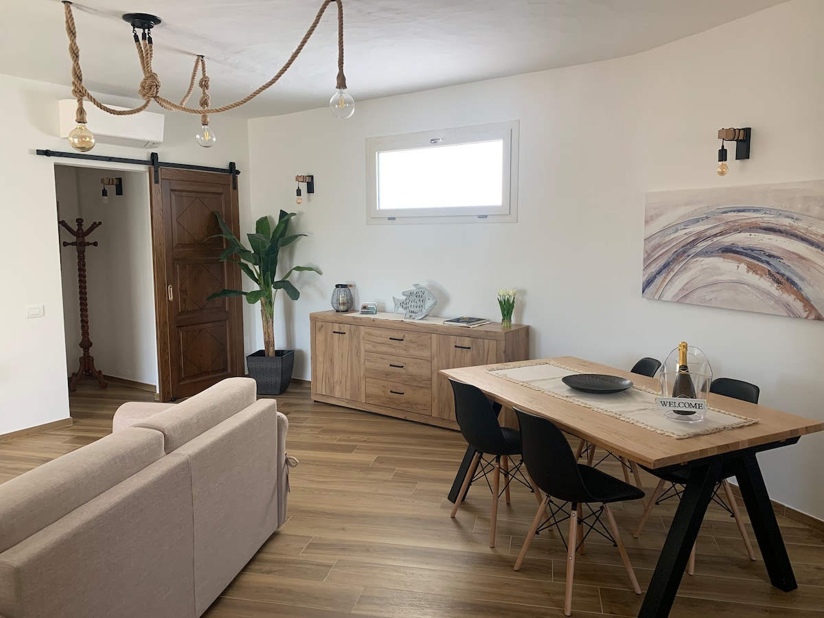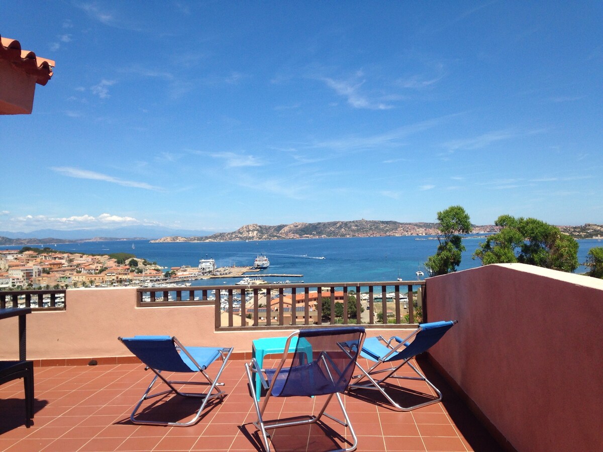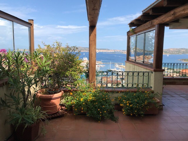 Elegáns háromszobás apartman nagy terasszal és látványos kilátással a tengerre és az egész Maddalena szigetcsoportra, amely független bejárattal rendelkezik, nagy nappali nagy nyitott üvegablakkal, konyha mosogatógéppel, nagy hálószoba tengerre néző kilátással és saját fürdőszobával, második hálószoba tengerre néző kilátással, második fürdőszoba. Minden jó formában van. Parkolóhely a társasházban. Az apartmanból elérheti a falu (szupermarketek, üzletek, bárok) és a kikötő 5 perc gyalog.