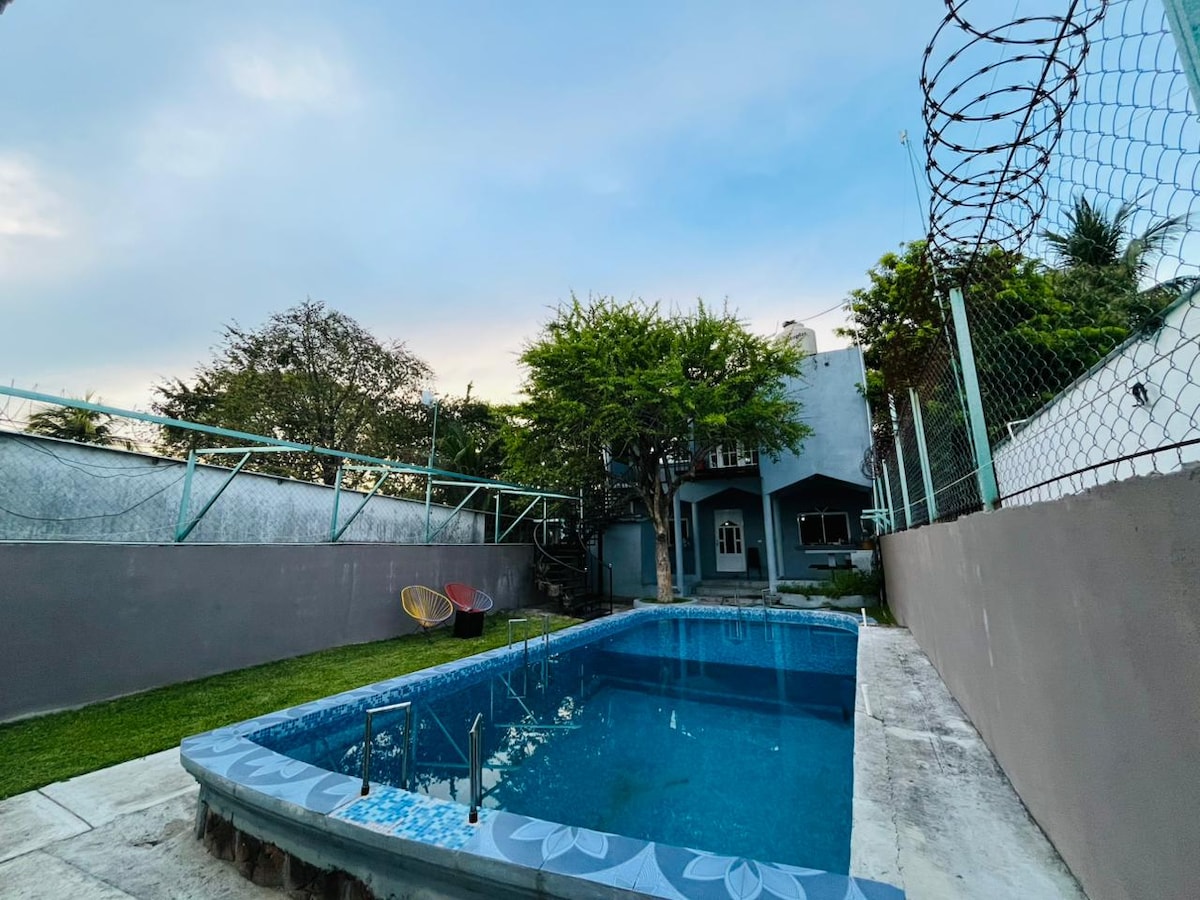 Élvezd ezt a helyet, ahol a természet veszi körül a nyugalmat. Alojamiento Entero Privado, amely a varázslatos falu bejáratánál található, távol a forgalom nyüzsgésétől. Tágas teraszod lesz grillezővel és medencével, amelyet a családoddal/barátoddal együtt élvezhetsz, és 2 jármű számára ingyenes parkolási lehetőséget biztosítunk. 15 percre a Régészeti Zónától és 5 percre a maja vonattól, hogy bejárhasd a környéket, és továbbra is jól érezd magad. Pihenj és újítsd meg.