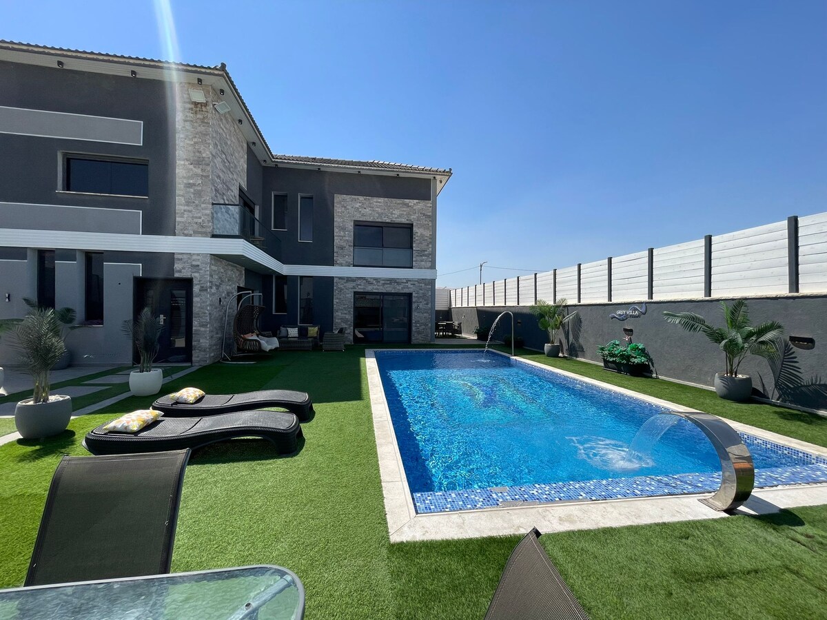GREY VILLA 🏊♂️ Foglald le még ma a szállásodat a Jericho Gate-nél található Grey Villában! A következő vár rád: A Jericho Gate-ben található lenyűgöző villa 4 tágas hálószobával, saját medencével (10x4,5 m) és lélegzetelállító kilátással rendelkezik minden szobából. Élvezd a teljesen felszerelt konyhát, a stílusos lakóteret, a grillezőt és a szabadtéri társalgót. Házigazdánk személyesen fogad majd, és éjjel-nappali segítséget nyújt. Extrákra van szükséged? Vízipipát, étkeztetési szolgáltatásokat és egyebeket kínálunk! Foglalj most egy fényűző és felejthetetlen tartózkodásra!