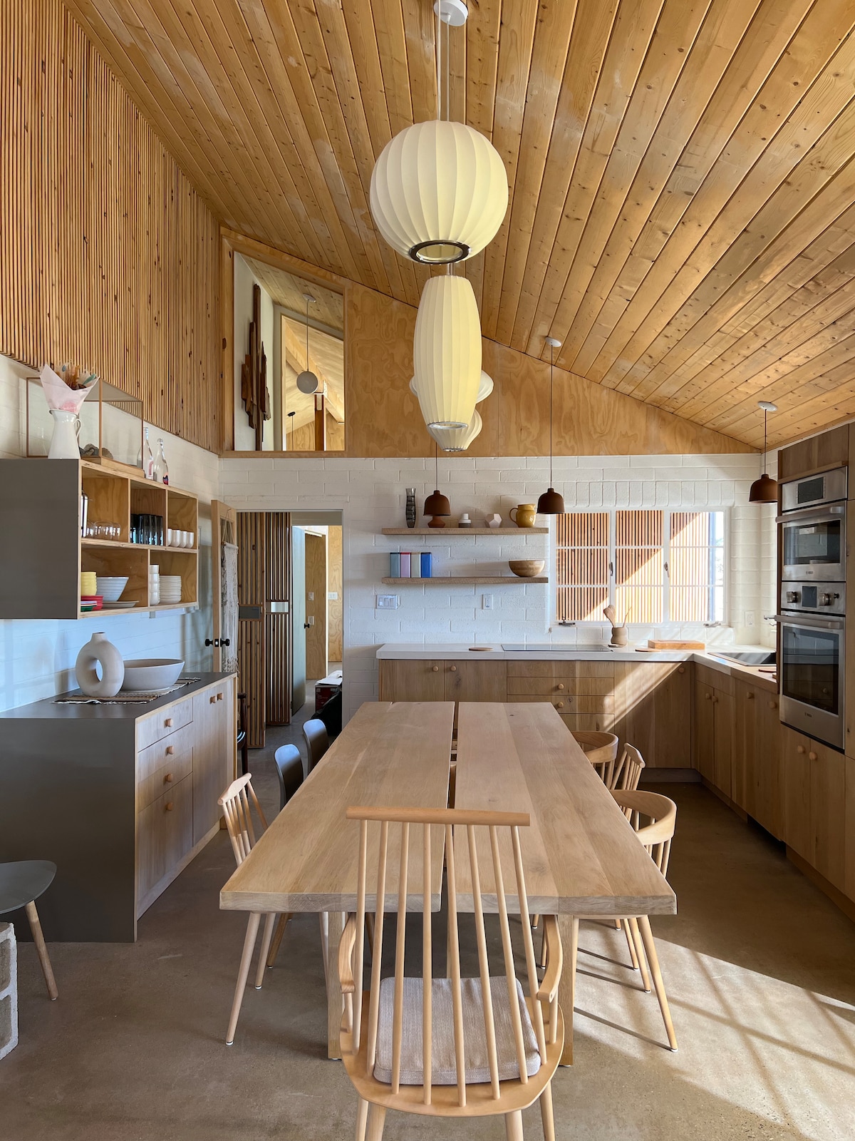 A modern sivatagi víkendház 9 hektárnyi sziklába és kefébe van összehajtva. A prérifarkasok úgy passzolnak, mint a pletykák Reggelente fürj járőrözik. A gyíkok délre igénylik a teraszokat. Az építészet letisztult, szándékosan furnérlemez, acél, égbolt. Pezsgőfürdő, kültéri zuhanyzó, tűzrakóhely és Starlink (ha a hollók megengedik). A Joshua Tree, az Integratron és a Pappy & Harriet's közelében. Szerepeltem a Dwellben. A nyugalomra épült. Megengedett: STVR 362-22.