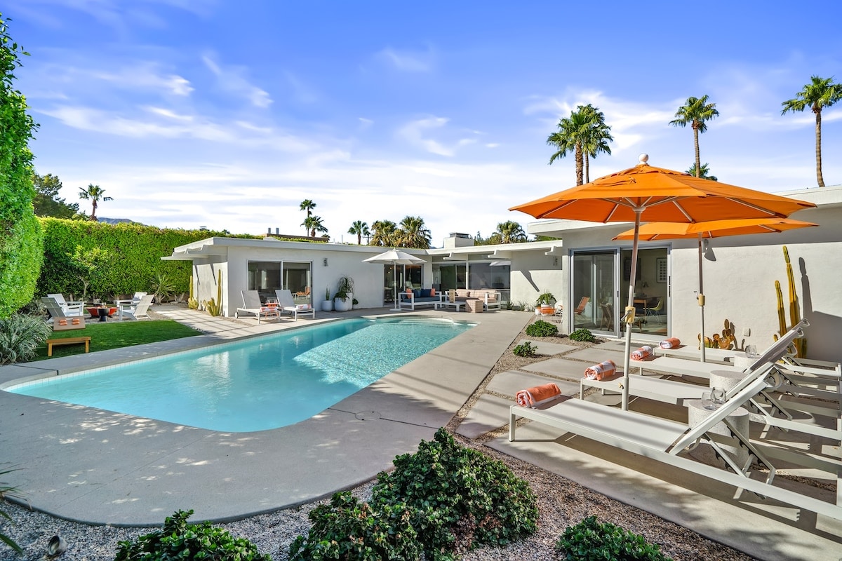 Üdvözöllek a The Mod Spotban, Palm Springs luxus oázisában. Ez a lenyűgöző, felújított otthon 1957-ben épült, és igazi századközépi otthon. Imádni fogod a hatalmas, 48 láb hosszú, körbefutó medencét, a pezsgőfürdőt és a rengeteg kényelmi szolgáltatást! A 4 hálószobával és 3 fürdőszobával ez a tökéletes otthon, hogy élvezhesd a napsütötte életmódot, ami Palm Springs. Pihenj a szentjánoskenyérfák között a medence melletti számos nyugágy egyikén, vagy élvezd a tüzet a szabadtéri nappaliban, miközben a luxusban sütkérezhetsz. Nem szeretnél kilépni!