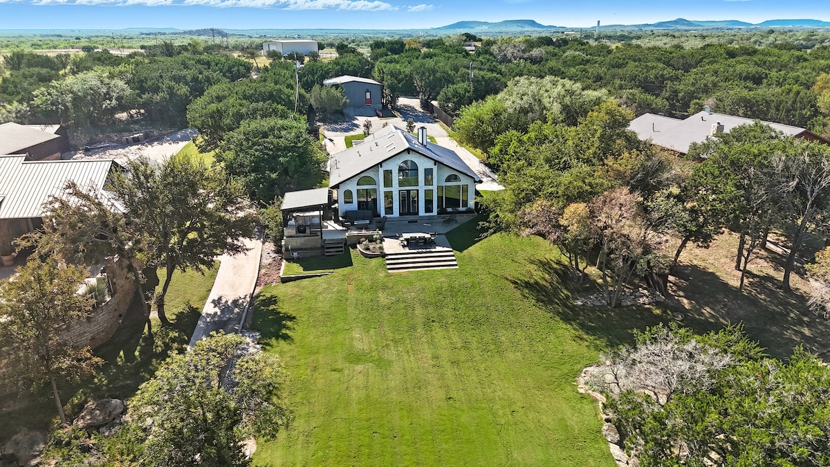 Possum Kingdom Lake!! Félelmetes hely nagy csoportok számára, amelyek közel 3 hektáron helyezkednek el. A ház körülbelül 3700 négyzetméteres, két szabadtéri szórakoztató területtel, beleértve a szabadtéri színpadot és a táncparkettet, a több tűzrakóhelyet, valamint egy kétszintes fedélzetet, amely tökéletes a dombra és a tóra nyíló kilátáshoz. A 2018-ban teljesen átalakított otthonban rengeteg hely van, bőséges közös terekkel, például pizzakonyhával. Kerekesszékkel megközelíthető.
