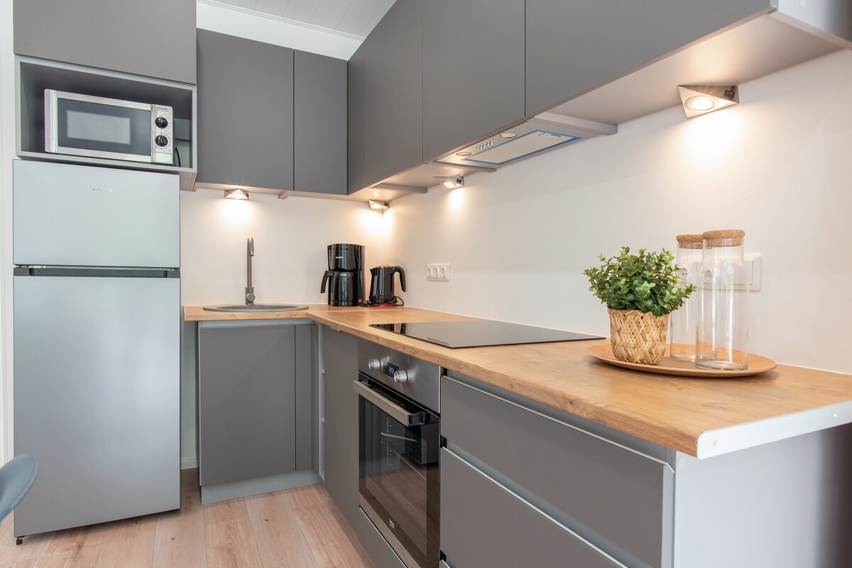 Tiny house w rooftop terrace, fireplace & service
