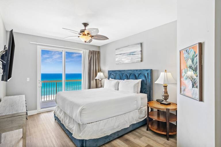 (Top 10 stílus) Strandfronti penthouse | 12. emelet | Ingyenes nyugágyak | Medencék | Sétálás a mólóig és a Pineapple Willy's-ig Üdvözlünk a tengerparti penthouseodban a floridai Panama City Beachen. Ez az egy hálószobás, egy fürdőszobás lakás legfeljebb 4 felnőtt elszállásolására alkalmas, és a 12. emeleti penthouse-szinten található, ahonnan lélegzetelállító, akadálytalan kilátás nyílik az öbölre, amint belépsz.