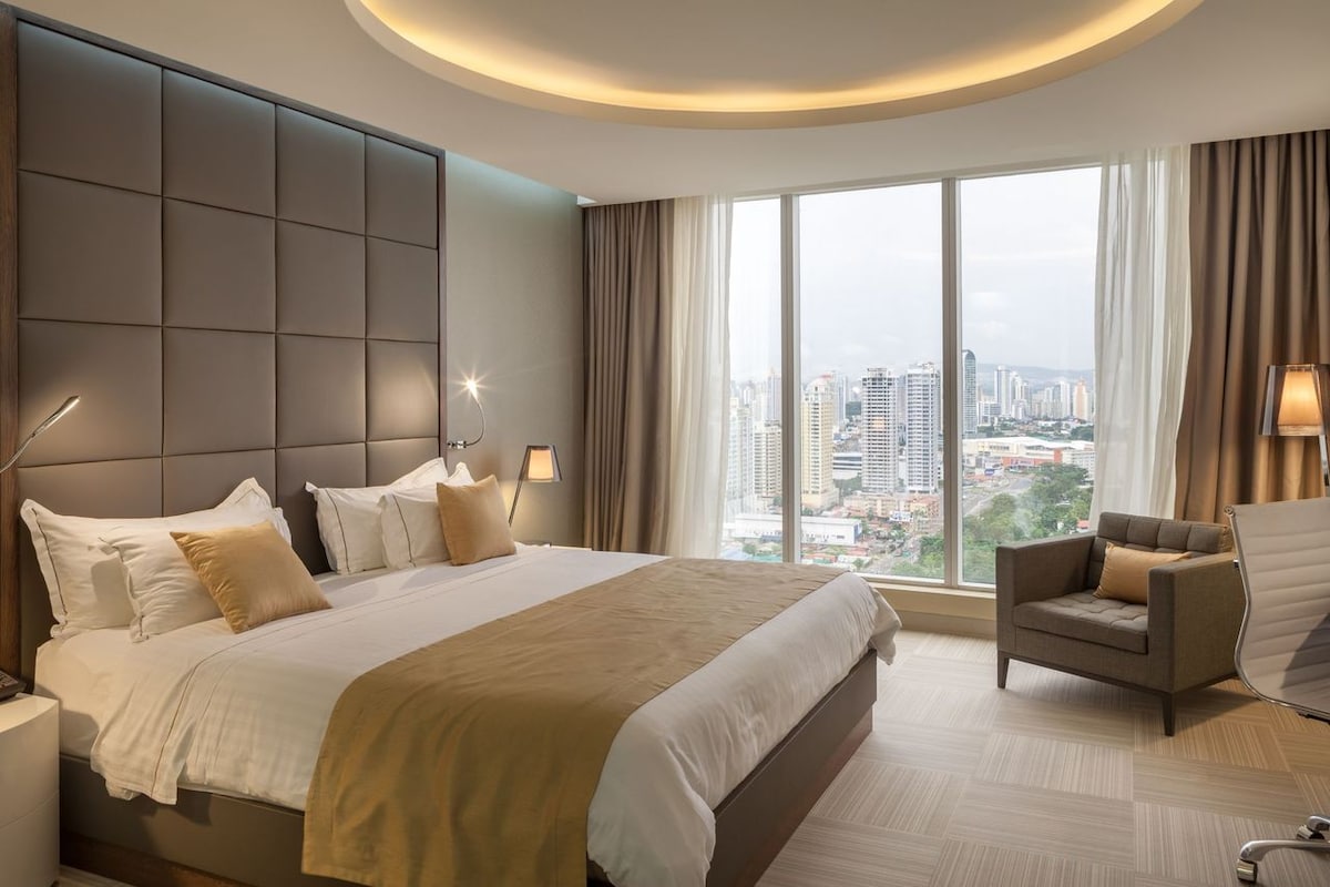 Élvezd az élményt, hogy a város egyik legelőkelőbb helyén élhetsz: A hálószobában egy queen méretű ágy vár puha, friss pamutlepedővel, hogy tökéletesen kipihenhesd magad egy panamai nap után. A lakás teljesen fel van szerelve mindennel, ami a kényelmes tartózkodáshoz szükséges, minden részletet gondosan átgondoltak, így csak meg kell érkezned és élvezned kell. Akár pihenészkedésre, munkára vagy megosztásra vágysz!