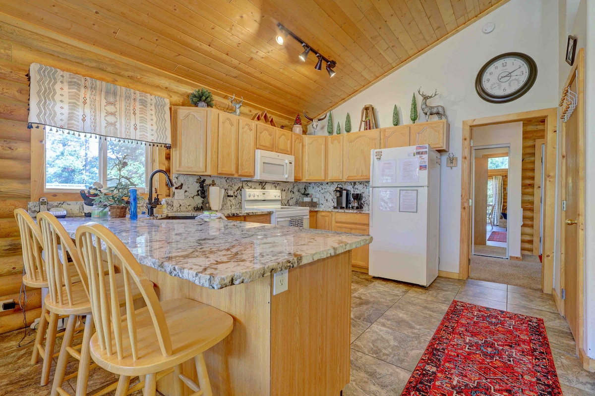 Elzárt rönkház oázis Duck Creek Village-ben Merülj el a természet ölelésében otthonos rönkházunkkal, amely egy nyugodt, fél hektáros erdőben fészkel a Utah állambeli Duck Creek Village-ben. Süss egy teljes víkendház privát szférájában, amely 3 tágas hálószobával és luxus king-size ággyal és kényelmes kanapéval büszkélkedhet a társalgóban. Kényelmesen alszik 8! Nyugodt erdős háttér: Csatlakozz újra a természethez, és megfiatalítsd a lelkedet. Stratégiailag mindössze 40 mérföldre található a Bryce Canyon és a Zion Nemzeti Parkoktól