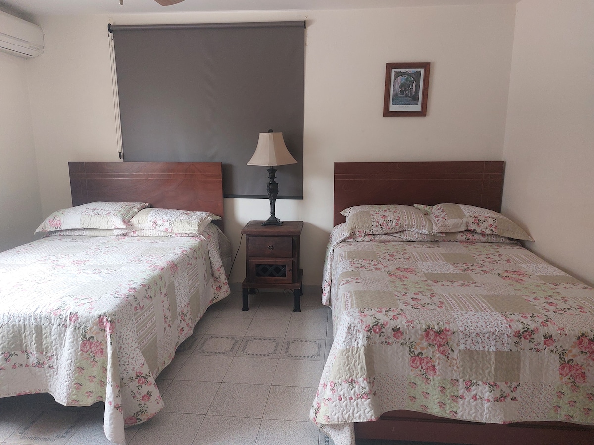 Kicsi, retró lakás stílussal és nagyon hangulatos, régi dekorációval a legfelső szinten, független hozzáféréssel, ideális egy nagyszerű élményhez. Az apartman fél háztömbnyire található az Ave Hidalgótól (Tampico fő sugárútja, amely átszeli a várost) egy biztonságos és csendes környéken, nagyon közel a turisztikai területekhez. Ideális 3 fő részére, 2 közös franciaágy és 1 egyszemélyes ágy ugyanabban a szobában, mini-split légkondicionáló a szobában.