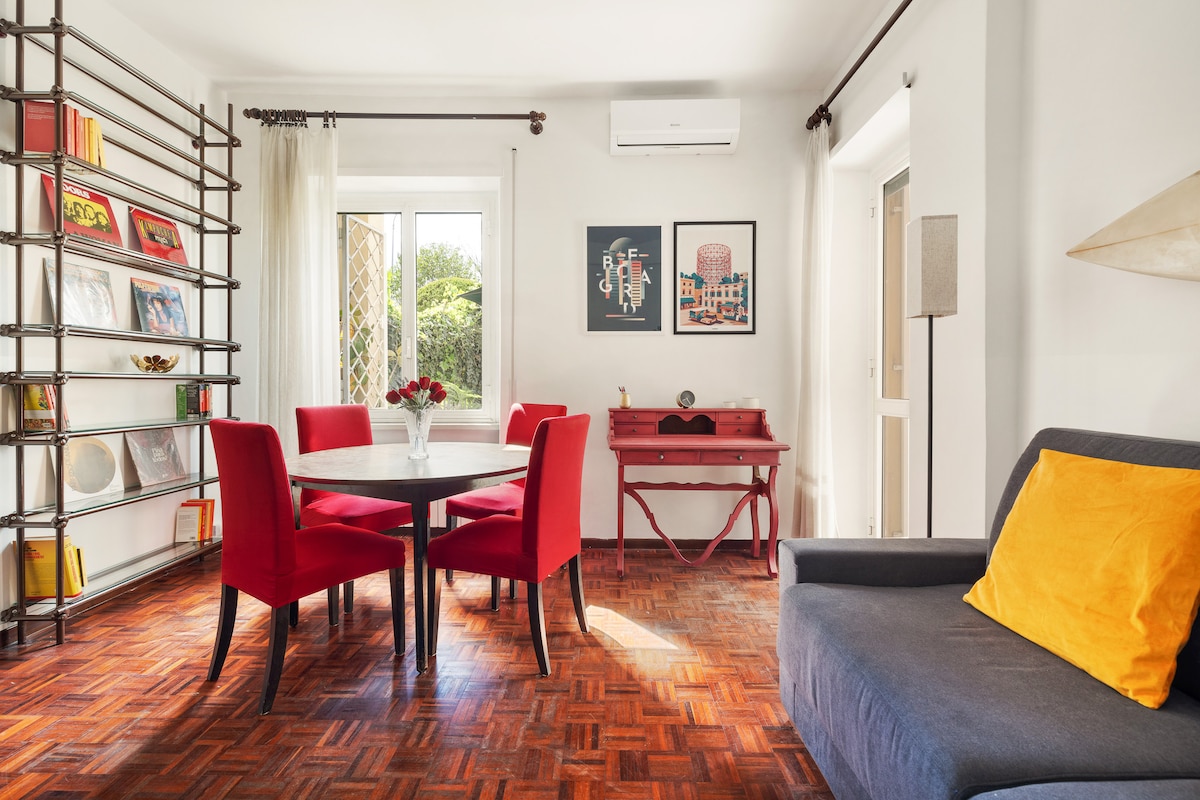Imagine a Cottage with a beams ceiling and private garden located in dreamlike place in the center of Rome! Borgo Monteverde lies on the hill above Trastevere. It is 35 m2 and features a fully equipped kitchen, lounge area with veranda and sofa bed; bedroom, bathroom, and garden. All of Rome’s main sights are within direct, fast and easy reach! The neighborhood is charming,safe, and quiet. There are plenty of local restaurants and services and you’ll be assisted by a responsive and helpful host!
