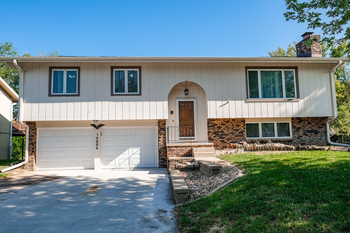 4 hálószobával, 2 1/2 fürdőszobával és 7 ággyal - bárki számára nagyszerű. Alacsony áron lehetsz magánszemély, pár vagy akár 11 fő is. Tartalmaz egy tűzrakóhelyet, mosógépet és szárítógépet, ingyenes wifit és parkolóhelyet. Ez egy 1425 négyzetméteres otthon a Fontenelle erdőben, nagyon békés és csendes. 15 percre van a The Old Market és a Charles Schwab Field, és 10 percre a Henry Doorly Zoo! Nagyszerű kirándulóhelyek közvetlenül a környéken. Nagyszerű hely egyéneknek, pároknak, családoknak és nagy csoportoknak.