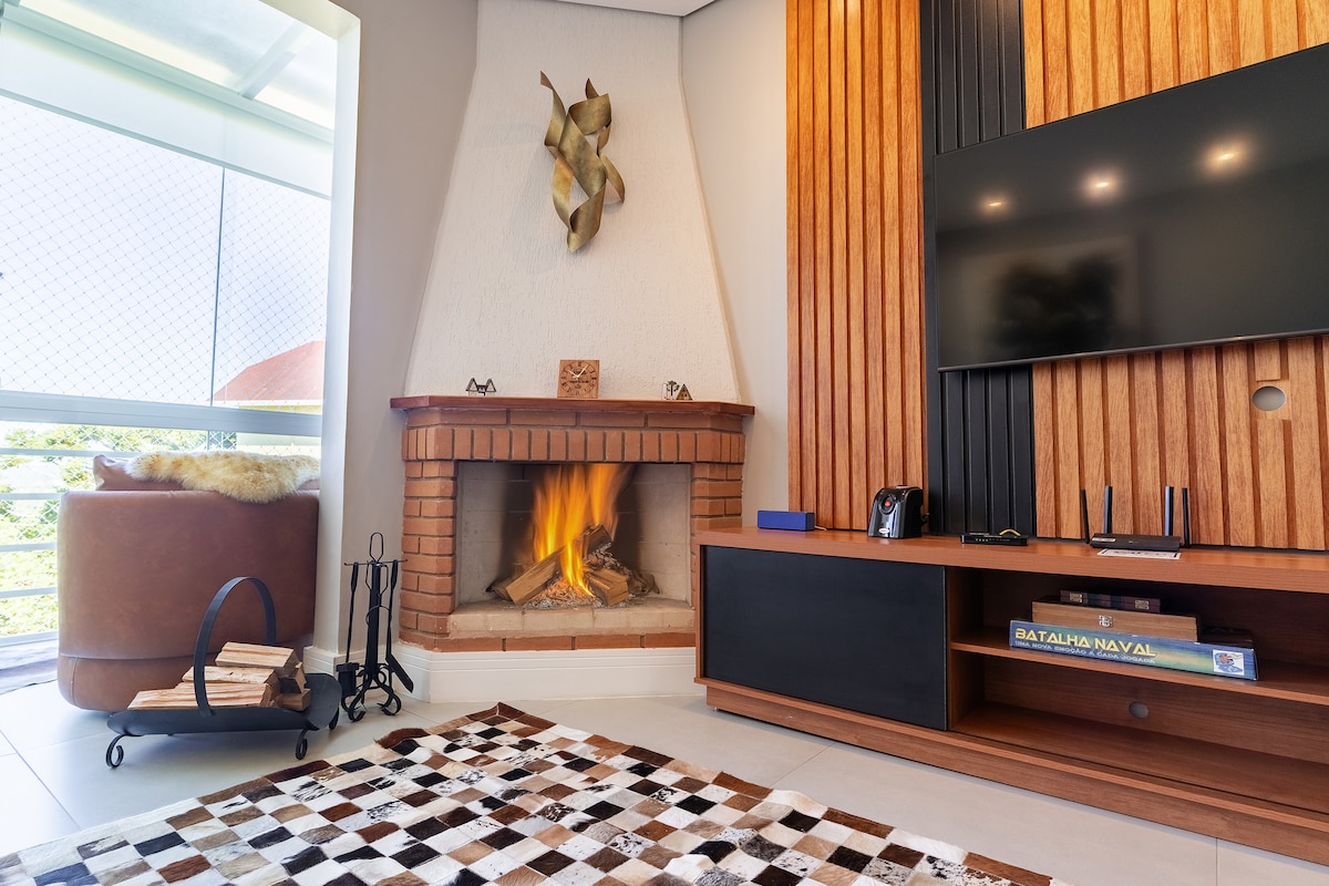 Lakás egy párnak, a központ közelében, privát és hangulatos erkéllyel, ahonnan gyönyörködhetsz a naplementében. Garázs, lift és teljesen aszfaltozott hozzáférés. *Kandalló * Fűtött queen méretű ágy * Törölközőmelegítő *Ágynemű és fürdőszoba az árban * Fürdőszobai kényelmi szolgáltatások *Hűtőtábla *Mikrohullámú sütő *Indukciós főzés *Nespresso kávéfőző *Víztisztító *Wi FI *TV Full HD NETFLIX és Globoplay funkcióval. * Romantikus dekorációkkal lepd meg a szerelmedet (konzultáció)
