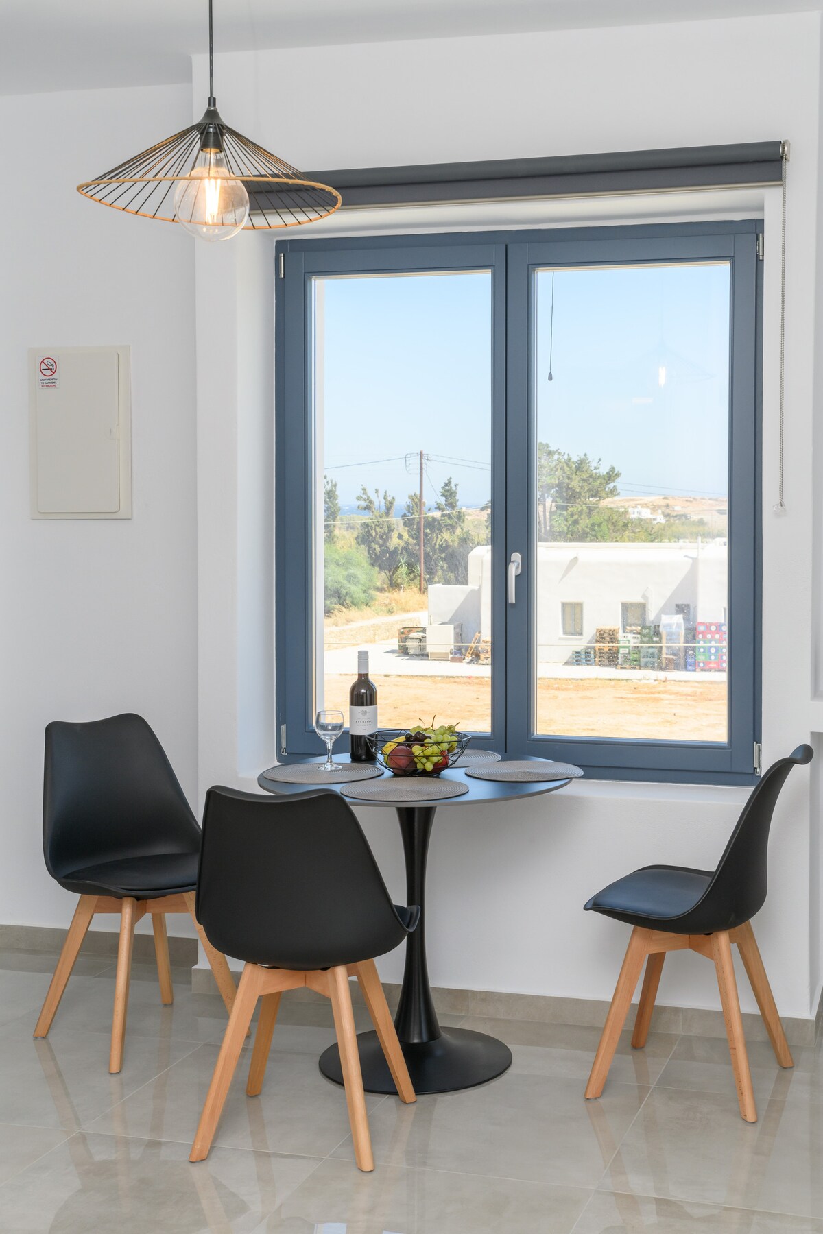 Élvezze a mi prémium apartman, csak pár méterre a hagyományos település Parikia, és minden, amit kínál. Innen élvezheti az otthon minden luxusát, a saját privát kilátással a nagy kék Égei-tengerre. Sétálj be a városba, és böngéssz a sok üzlet között, látogass el a tengerparti kávézókba, és egyél a sok nagyszerű étterem egyikében. Pihenjen az 50m2 teraszon, és élvezze a a Portes mögötti naplemente a Parian kikötő jellegzetes látványossága.