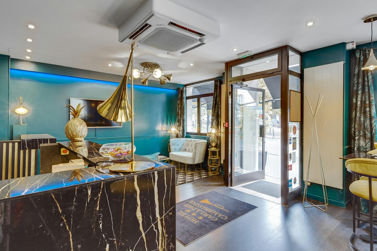 Üdvözlünk a szobádban, amelyet úgy terveztünk, hogy Párizs szívében ötvözze a kényelmet, az eleganciát és a funkcionalitást. Egy teljesen felújított dizájnhotelben található, és ideális környezetet kínál pároknak vagy kétfős csoportoknak. Az egyszerű és modern dekoráció, amely hű a szálloda világához, megnyugtató és meleg légkört teremt, amely tökéletes egy sikeres párizsi tartózkodáshoz.