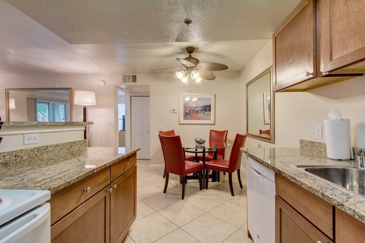 Felújított, egy hálószobás lakás kevesebb mint másfél kilométerre a Las Vegas Strip-től, egy biztonságos, őrzött lakóközösségben. Élvezd a medencéket, a pezsgőfürdőket, az edzőtermet, az INGYENES PARKOLÁST ÉS AZ ÜDÜLŐDÍJAK MENTESSÉGÉT. Teljesen felújított belső tér, teljesen felszerelt konyha, Keurig kávéfőző és kávé. Gyors Wi-Fi, Smart TV Netflixszel és YouTube TV-vel a helyi csatornák és sportműsorok megtekintéséhez, valamint kényelmes lakótér. Tökéletes szabadidős tevékenységekhez, koncertekre, üzleti utakra és hosszabb távú foglalásokhoz.