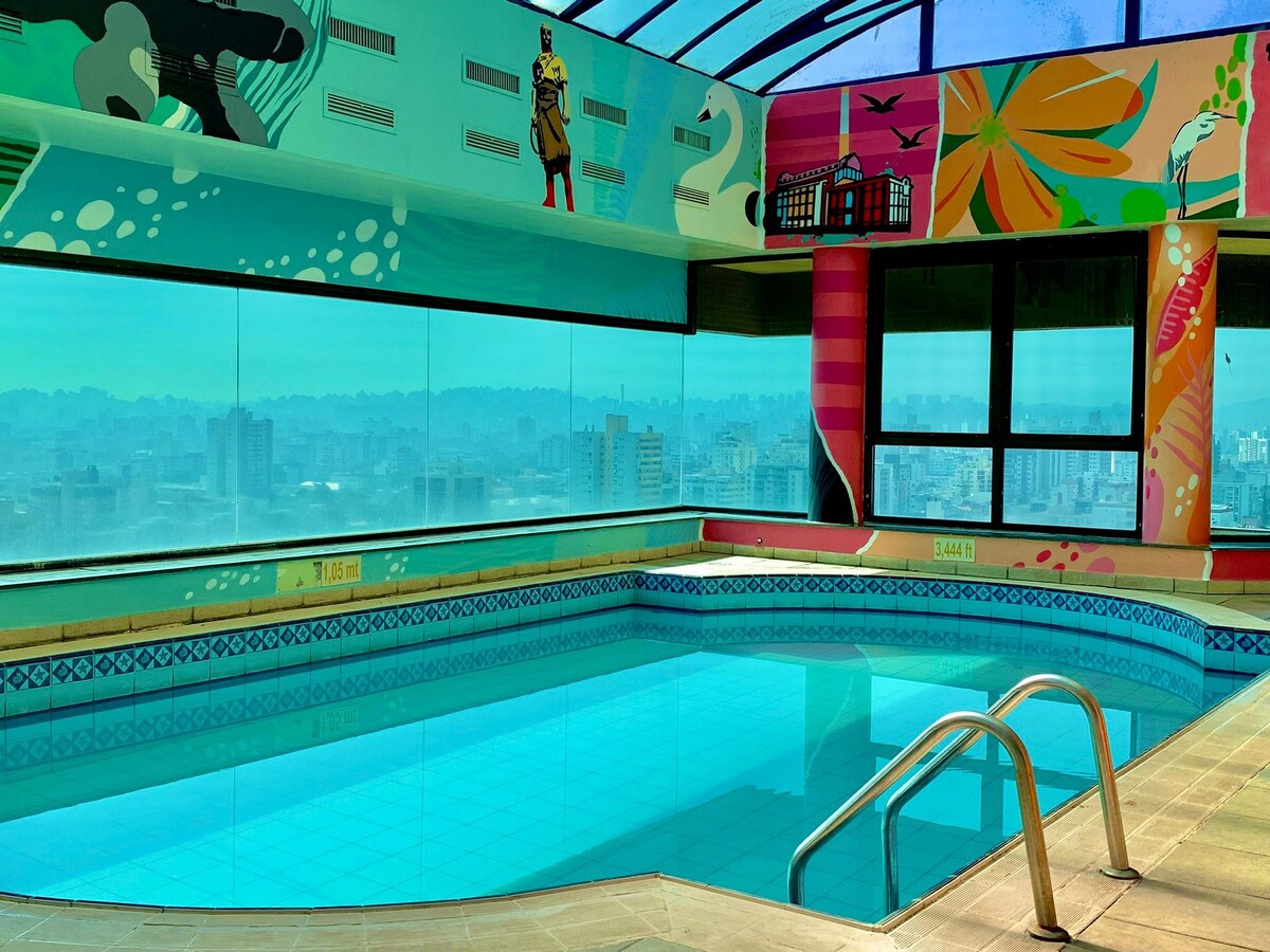 Stúdió parkra néző kilátással és automatizálással/Alexa. Zárt garázs, konyha alapvető kellékekkel és ágyneművel/fürdőlepedővel. Központi helyen található, tetőterasz medencével, edzőteremmel és közös munkaterülettel. A Parque da Redenção néhány méterre, Organic Fair és Brique hétvégénként, Refúgio do Lago gasztronómia és előadások az Araújo Vianna Auditoriumban. Közel a Cidade Baixa/Bom Fim környékének bárjaihoz, éttermeihez és éjszakai életéhez. Könnyen megközelíthető az Orla do Guaíba, az egyetemek, a kórházak és más környékek.