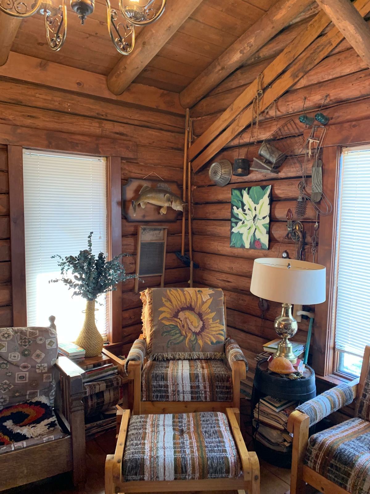 WATERFRONT Log Cabin & MOVIE SET location! Enjoy your time away in rustic log cabin complete with live edge wide plank flooring, original art, Moose Rack, animal hides, antique chandeliers, claw foot tub Lakefront PRIVATE fine sand beach. By day the mornings are peaceful with the smell of americano, humming birds, fresh berries growing off the deck and sunny private beach. By night the sky is bright with stars and aura borealis (northern lights). The set for a new Indie film. You saw it 1st!