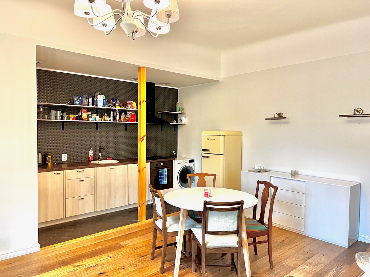 Gyönyörű 100 m2-es tetőtéri lakás szaunával és erkélyrel Pärnu szívében. A történelmi óvárosban található, és elhelyezkedése olyan központi, amennyire csak lehet – ideális azok számára, akik szeretnék megtapasztalni a város ritmusát, miközben kényelmesen tartózkodnak. Az apartman Pärnu egyik legtörténelmibb, 17. századi épületének utolsó emeletén található, és az erkélyről varázslatos kilátás nyílik az óváros háztetőire. Stílusosan felújított, minden modern kényelemmel és egy belső udvarral a parkoláshoz.