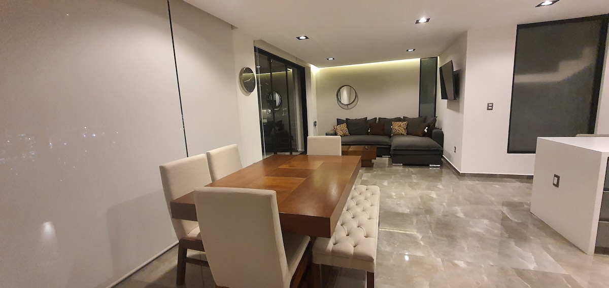 Ez a vadonatúj, 160 m2-es apartman Juriquilla szívében található, és egyedülálló élményt kínál a kényelmi szolgáltatások és a szórakozási lehetőségek terén is. Ha kiváló minőséget keresel, ne keress tovább, és szállj meg Queretaró legmodernebb és legfényűzőbb apartmanjában a felejthetetlen élményért. A Starbucks, a Walmart, a bárok és a legjobb éttermek, például a Sonora Grill & Hunger gyalogos távolságra vannak, és ez a lakás mindent kínál: kényelmes ágyakat, erkélyt, OLED 4K tévéket és 100 hüvelykes házimozit az ágyadból.