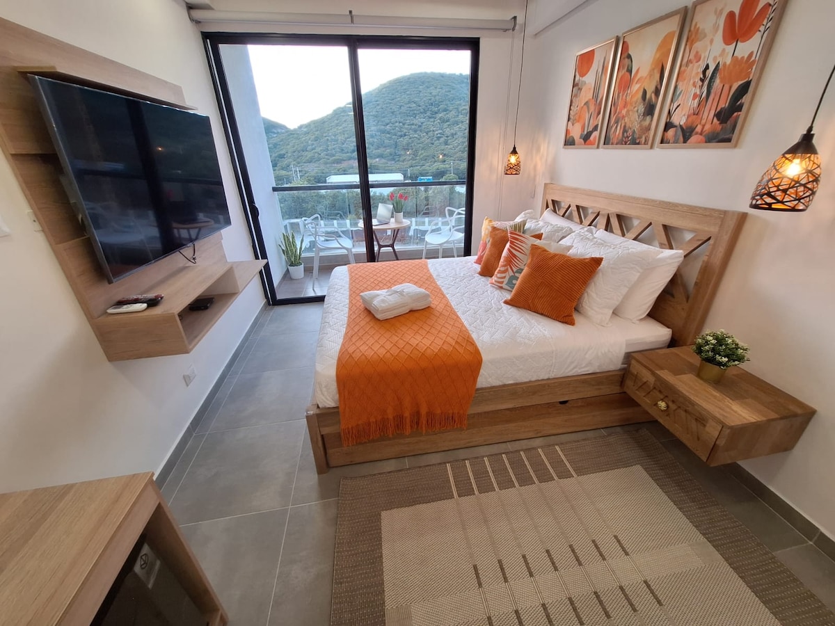 Cabaña moderna en lo alto del cerro de Taganga, con vista espectacular al mar 🌅. De un solo ambiente, cuenta con cocina equipada, baño privado, aire acondicionado y terraza para disfrutar la brisa marina. Se llega caminando unos 10 minutos por escaleras, pero la vista vale totalmente la pena. Incluye desayuno servido en nuestra terraza principal con hermosa panorámica de la bahía.