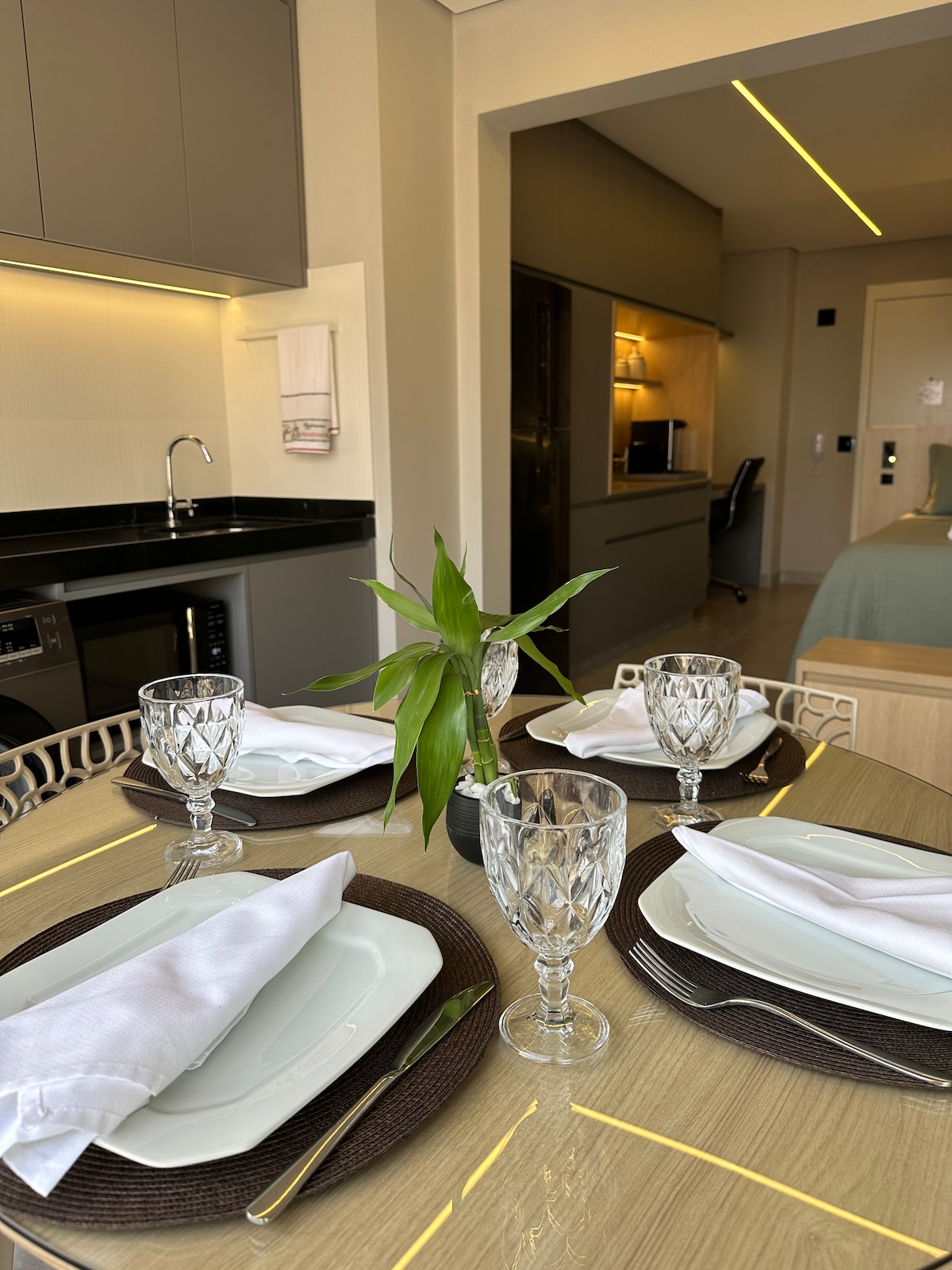 Bem-vindo ao Studio 1310 — um espaço exclusivo que une sofisticação e funcionalidade. Com acabamento de alto padrão, o studio foi planejado para proporcionar conforto e praticidade, ideal para diferentes tipos de estadia. Estamos próximos ao Aeroporto Internacional de Guarulhos, com fácil acesso a restaurantes, mercados e serviços essenciais. O espaço oferece uma agradável vista da cidade, perfeita para relaxar entre voos ou desfrutar de uma estadia estratégica próxima a São Paulo.