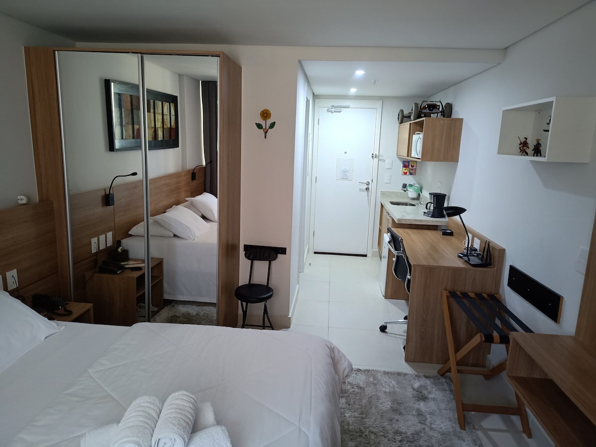 Élvezd a kényelmet ezen a nagyon jó elhelyezkedésű helyen, közel a kiállítási parkhoz, a Hortóhoz és a változatos kereskedelemhez. The Suite is located at Resort Granja Brasil in Itaipava. A helyünk king méretű ággyal, TV-vel, Wi-Fi-vel, meleg/hideg légkondicionálóval, ágynemű és fürdés. Hozzáférhetsz az előkelő társasházhoz, ahol éttermek, fitneszközpontok, szaunák, jacuzzik, játékterem, tenisz-, futball- és röplabdapályák, fűtött medence, gyógyfürdő, mosoda és ösvények találhatók.