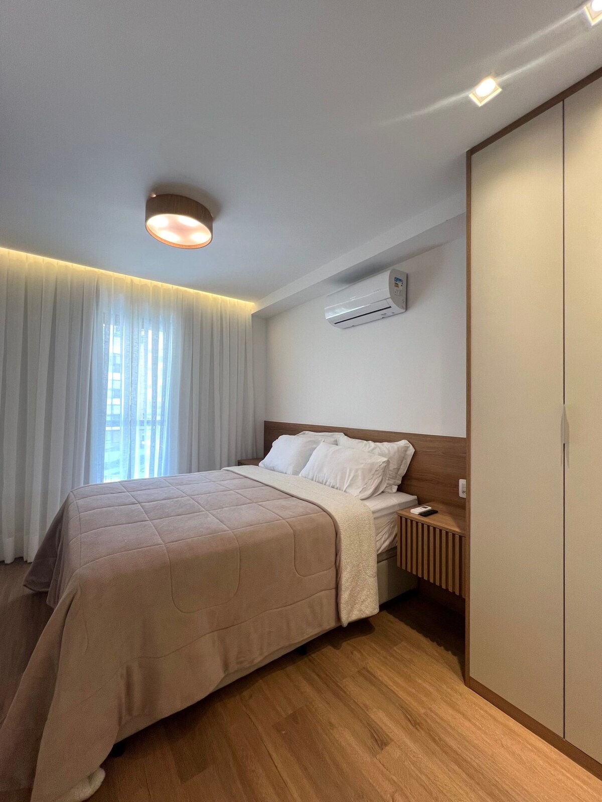 Modern és hangulatos lakás Itaipavában ízléses dekorációval, kényelmes ággyal, kiváló zuhanyzóval és prémium ágyneművel. Gyors internet, tévé, légkondicionáló és praktikus konyhai eszközök. A társasház medencét, jakuzzit, sportpályákat, piacot és éttermeket kínál, zöldövezetben, Petrópolis közelében. A házigazda figyelmes kiszolgálást és helyi tippeket nyújt, gondoskodva a kényelemről, a vendégszeretetről és az elvárásokat meghaladó szállásról.