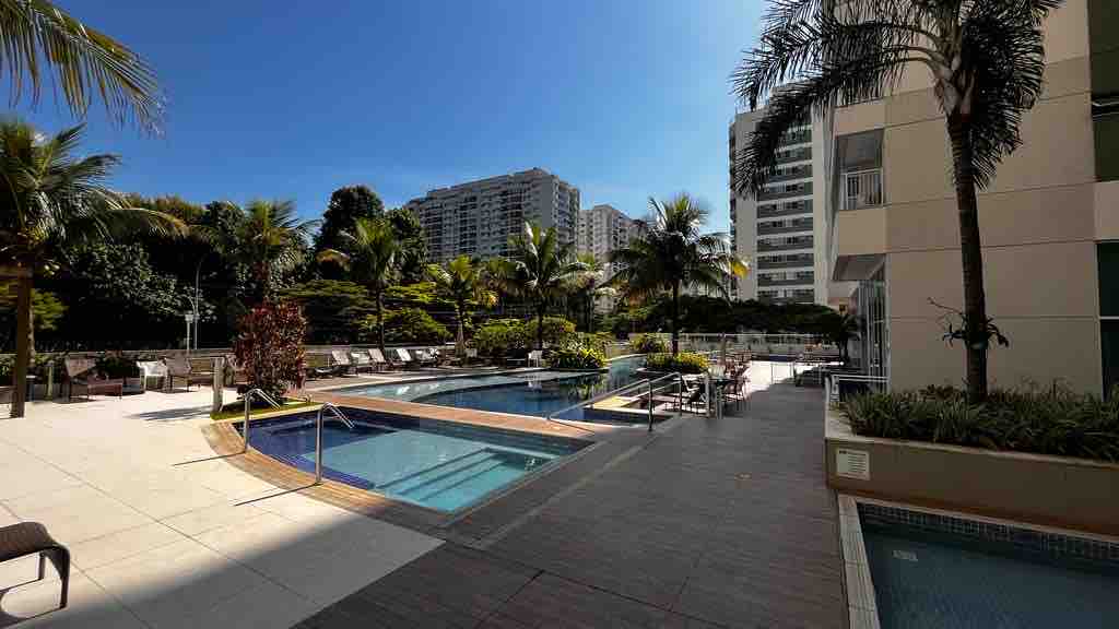 •VERHETETLEN ELHELYEZKEDÉS: A Riocentro és az Olimpiai Park mellett •NAGY SEBESSÉGŰ KAPCSOLAT: Gyors és megbízható Wi-Fi •OKOS TV: 43 hüvelykes képernyő •MEDENCE: Tökéletes napsütéses napokra •ÖNELLÁTÁS: Elektronikus zárakat használunk a kényelem és a biztonság érdekében • NYÍLT KILÁTÁS: Kellemes és nyílt kilátás, ideális a pihenéshez és a hangulat élvezetéhez •KÉNYELMI SZOLGÁLTATÁSOK: medence, fitneszterem, gőzszauna, 24 órás biztonsági szolgálat és parkoló* *1 parkolóhely az elérhetőség függvényében