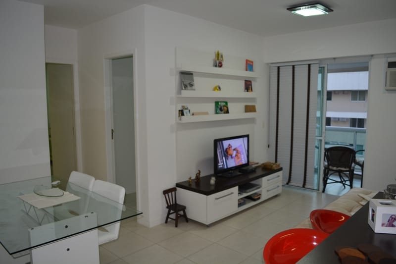 Flat de alto luxo, totalmente planejado, com 1 suíte + banheiro social, sala elegante e cozinha integrada com cooktop. Condomínio com estrutura completa de lazer: piscina, sauna, academia, salão de festas, cinema/home cinema e garagem incluída. Ideal para quem busca conforto, tranquilidade e praticidade, com fácil acesso à Barra da Tijuca e principais vias. Um espaço pensado para viver bem e descansar melhor.