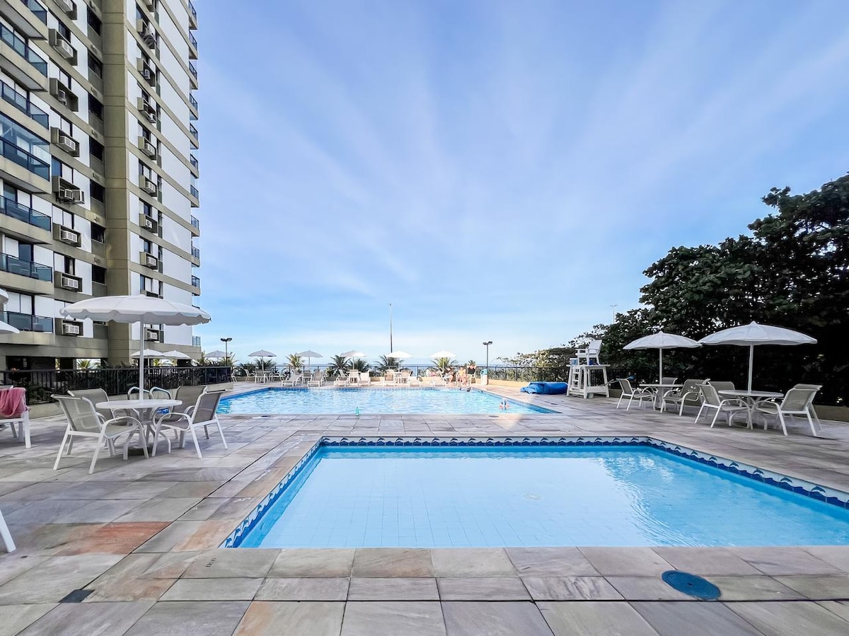 Fedezd fel a kifinomultságot és a kényelmet ebben a híres építész által díszített butiklakásban. Teljesen felszerelt, részleges kilátással a partra, tökéletes az üzleti és szabadidős tevékenységekhez. Konyha szűrt vízzel, 24 órás biztonsági szolgálattal, úszómedencével, szaunával, pezsgőfürdővel, étteremmel, fodrászattal és edzőteremmel. Könnyű hozzáférés a bevásárlóközpontokhoz és a helyi üzletekhez.1 perc sétára a strandtól gyalog. * 3 Hospede is on the double kanapé bed in the living room with Air-Conditioning.*