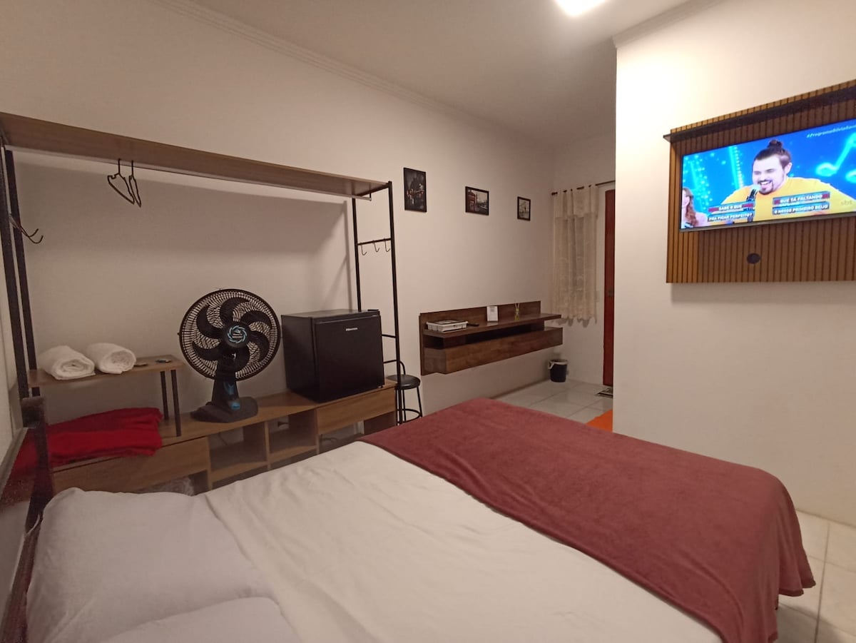 São José központjában található, 5 percre a CenterVale bevásárlóközponttól (séta), a CTA-tól és a Dutrától. Az épület 24 órás recepciót, fedett parkolást, napi lakástakarítást, medencét, szaunát, edzőtermet, éttermet és mosodát kínál (zsetonok a recepción). Az apartmanhoz tartozik egy teljes konyha (sütő, hűtőszekrény, mikrohullámú sütő, főzőlap), egy nappali kábeltévével és internettel, egy hálószoba ággyal, tévé, gardróbszekrény, széf, légkondicionáló és egy erkély gyönyörű kilátással (10. emelet).