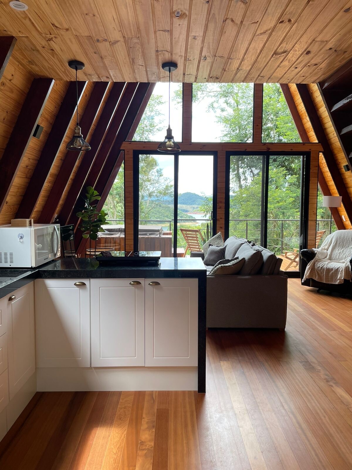 A Cabana West Coast é uma A-Frame inspirada nos chalés suíços da belle époque, com toque contemporâneo e muito charme. Sua fachada toda envidraçada oferece uma vista única para a natureza, perfeita para relaxar. Conta com cama de casal, banheira de hidromassagem, lareira externa e chopeira no quarto com chope Complô direto da fábrica. A apenas 50m do nosso Beergarden da Cervejaria Complô, é o refúgio ideal para casais que buscam conforto, estilo e cerveja artesanal. Pets são bem-vindos!