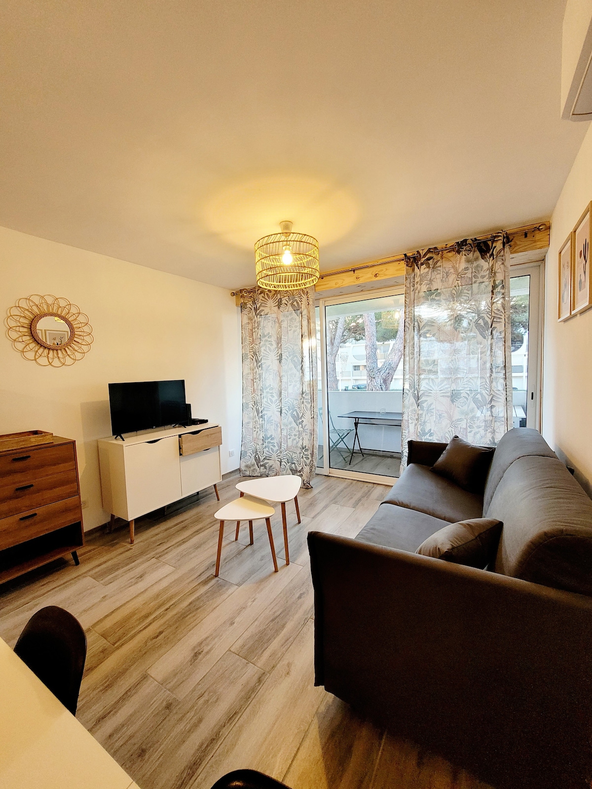⛱ Cosy studio, entièrement rénové dans une résidence très calme & agréable ⛱ ▸ A 3 min de la plage avec vue mer depuis le balcon ▸ Parking privé, clôturé & sécurisé : possibilité de garer 2 voitures ▸ Entièrement équipé : Wifi, Climatisation, TV, Lave Linge ▸ Linge de maison fourni : draps, serviettes, couvertures ▸ A proximité des commerces & restaurants (Lidl, Super U, boulangerie,Tabac,...) ▸ Horaires de départ flexibles ▸ Idéal pour 3 personnes (2 adultes & 1 enfant)