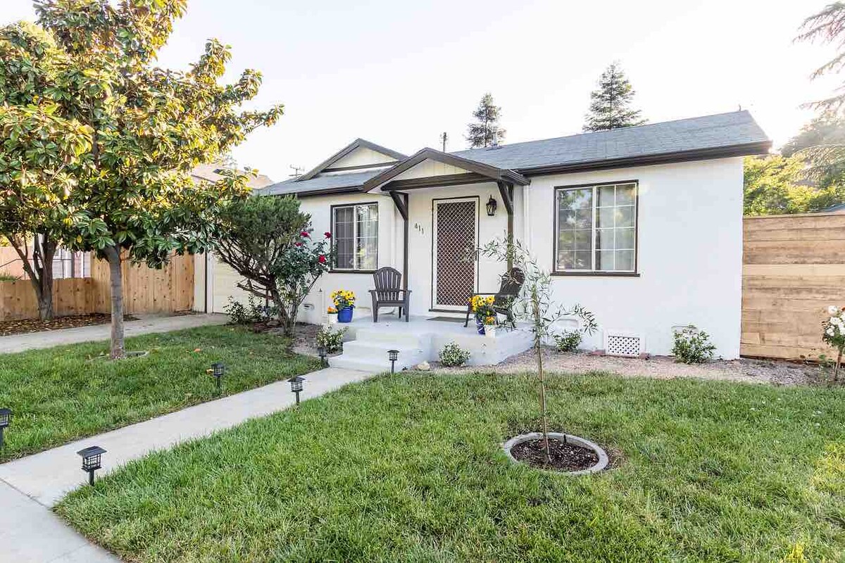 Skandináv otthon a belvárosban, teljesen felújítva. Az északi végén található, rövid sétára/biciklire a vásártól (1/4 mérföld), üzletektől, borászatoktól, éttermektől/bároktól a városi park központjában (1,5 mérföld). Élvezd mindazt, amit Paso Robles kínál, bájos, környezetbarát bungalónkból. Pihenj a nagy, elkerített hátsó udvarban, gyújts tüzet a grillen, vagy játssz egy kört bocciával, mielőtt elindulnál a városba. Csak néhány háztömbnyire a Paso Marketwalktól, ahol rövid sétára találsz ételt, bort, kávét és élő zenét :)