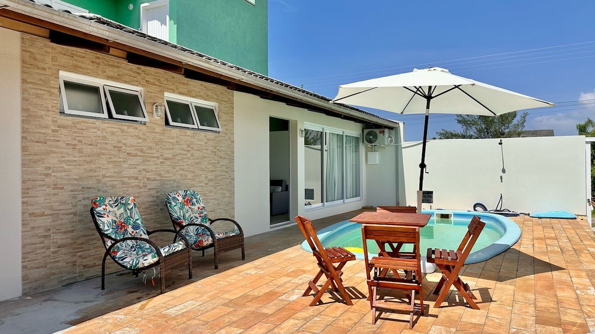 1 hálószoba légkondicionálóval, nagy fedett és zárt garázs, mosógép, grillező, kandalló, Wi-Fi és munkaállomás. Legfeljebb 4 fő befogadására alkalmas, a Rua Araranguán, a Beira Mar sarkán, a strandra néz, 450 méterre a Torres-szel határos Mampituba folyótól. A hálószobában egy franciaágy, a nappaliban egy felső ágy és egy kanapéágy, amely két egyszemélyes ággyá vagy egy másik franciaággyá alakítható. Kiadó víkendházunk van, vagy hozhatsz magaddal sajátot is.