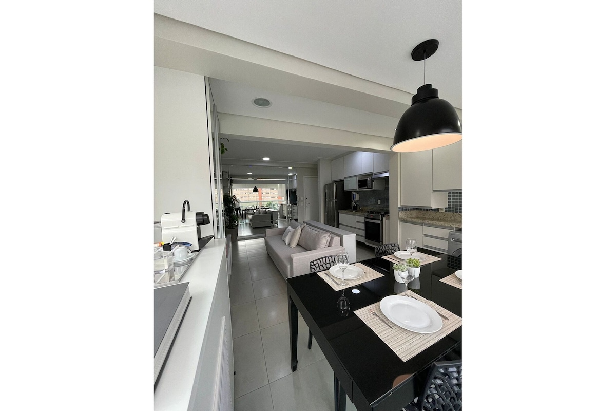 Confy design Spa apartment. You'll have your onw private sauna and ofurô with an incredible view of the São Paulo DownTown Dedicated exclusively for guests. Área privativa de 82m2 e se localiza em um edifício de construção nova, da construtora Cyrela, com acabamento em alto padrão, com segurança e portaria 24h. Há apenas 50 metros de distância há um supermercado que funciona 24h por dia, de domingo à domingo. O metrô fica na esquina, há apenas 100 metros do edifício.
