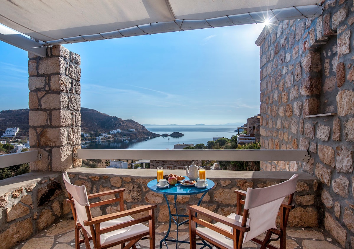 Hagyományos stúdió Chora bejáratánál, egy amfiteátrális helyen, amelyet a szélmalmok és a kolostor árnyékol. Ez a gyönyörű és hangulatos stúdió teljesen felszerelt konyhával és fürdőszobával rendelkezik, amely hagyományos stílusban készült. A kilátás kiemelkedő, mivel a központi tér főablaka a vendégeknek kínál, még mielőtt felkelnének az ágyból egy reggeli látványosság, amelyre egyetlen fénykép sem tehet igazságot. Lélegzetelállító kilátás nyílik a kikötőre és a távoli szigetekre. A vendégek a verandáról varázslatos naplementét élvezhetnek.