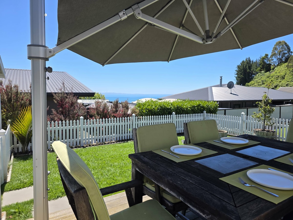 Üdvözöljük kerti ingatlanunkban, mindössze 100 méterre a fő Takaka üzletektől. A stúdió nagy és hangulatos, saját fürdőszobával. Élvezni fogod a magánéletet a saját fedélzeteddel, de mindig szívesen beszélgetünk, és szeretünk új emberekkel találkozni. Nincs főzési lehetőség (de van hűtő, vízforraló, kenyérpirító stb., így élvezheted a reggeli kávédat és müzlidet stb.). Mindössze két perc sétára vagy néhány igazán nagyszerű kávézótól és étteremtől - a The Wholemeal Cafe a kedvenc, 7 napos nyitott napunk.