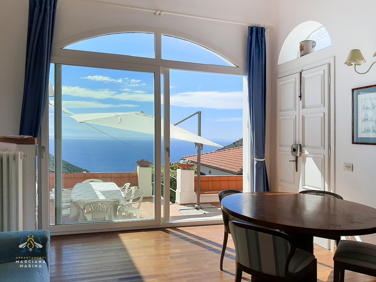Appartamento, con incantevole vista sul mare, situato al piano terra di una villa, nel cuore della macchia mediterranea del parco naturale di Fetovaia. Composto da ampio soggiorno con zona cottura e divano letto matrimoniale, camera matrimoniale, bagno con doccia. Provvisto di aria condizionata. Confortevole spazio esterno con tavolo e ombrellone, zona relax con lettini e incantevole seduta per colazione e aperitivi. Accesso al mare tramite scale/sentiero (100 metri)