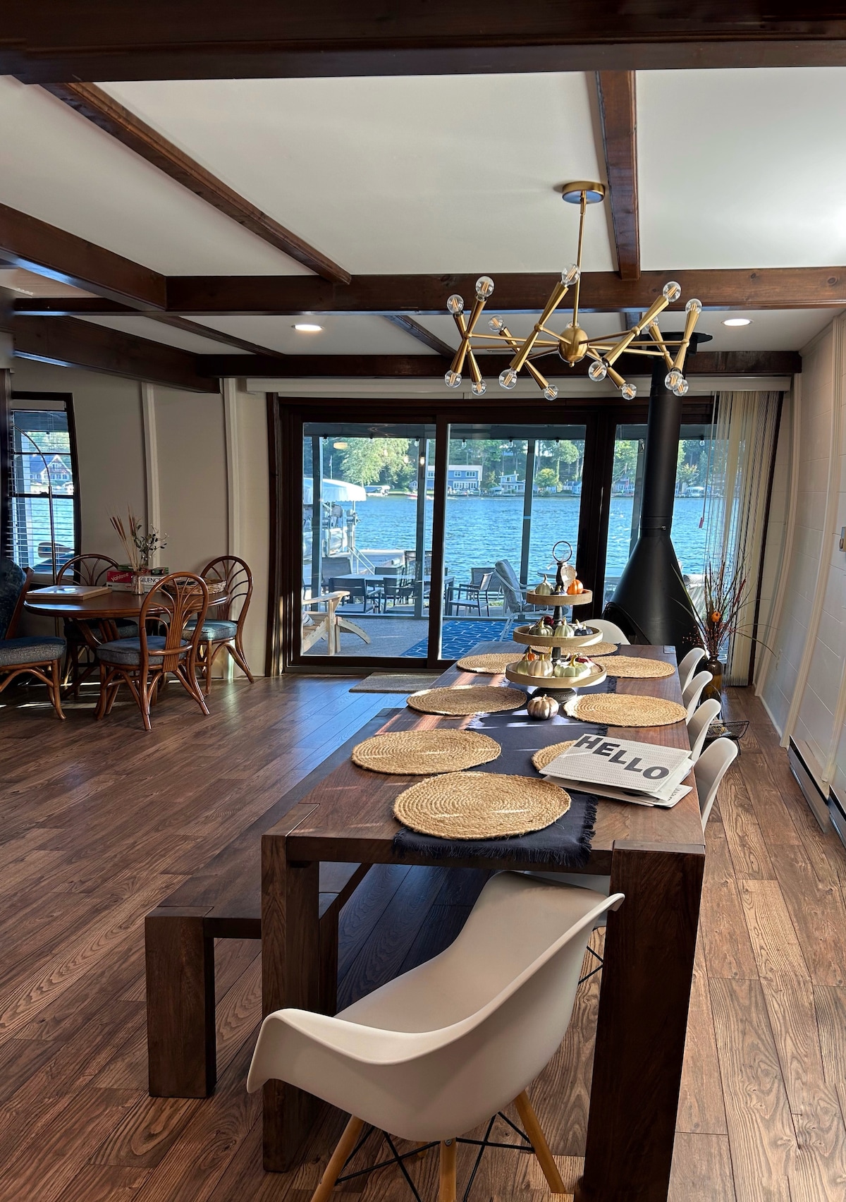 A víkendház egy 3,6 hektáros magántulajdonban álló erdős terület hátsó részén fészkel, és egy rövid sétára van a sportmedencétől. A felújított otthon két hálószobával, alvófülkével, családi szobával, mosó- és szárítógéppel, az otthon minden kényelmi szolgáltatásával rendelkezik. Élvezd a 160 lábnyi tóparti partot a privát dokkunknál. Két kajak, egy kenu és egy kis halászhajó, úszó és mentőmellények csónakázáshoz vagy úszáshoz. Tölts egy napot a tónál, főzz vacsorát az egyik grillsütőnkön, és élvezd az estét a tűzrakóhelynél.