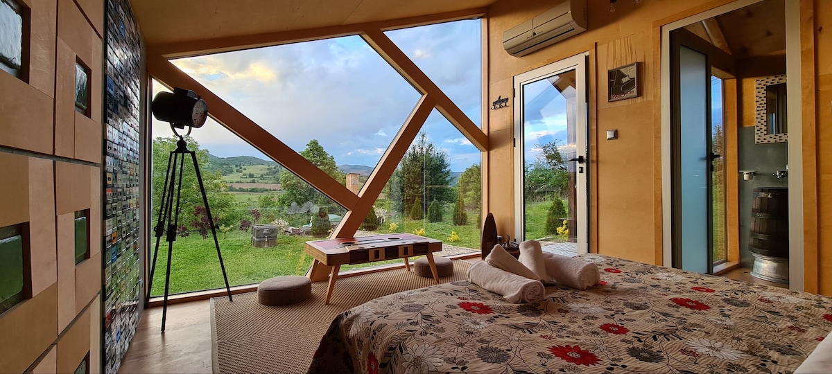 Bemutatunk egy nem szokványos stúdiót a felejthetetlen, romantikus nyaraláshoz a „The House”-ban. Hálószoba káddal és kilátással🏔 ☀. A fürdőkád központi helyen található, kilátással a napkeltére, a holdra és a hegyre. A termálzóna használata ingyenes: 10:30-18:30. A vendégek ingyenes Wi-Fi-t, NETFLIX-et, kábeltévét és prémium csatornákat használhatnak. A teakonyha edényekkel, poharakkal, hűtőszekrénnyel, kávéfőzővel és kávéval van felszerelve.