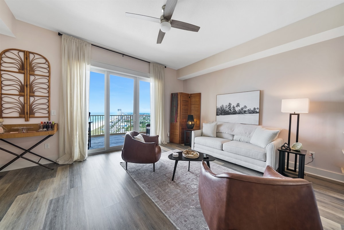 My Happy Place | 2 hálószoba + emeletes szoba / 2 fürdőszoba 15. emeleti lakás, nagyszerű kilátással az öbölre! INGYENES felszerelés a strandon (2 szék + 1 napernyő, 2026. március–október), valamint hozzáférés több mint 8 extra székhez, több mint 3 napernyőhöz, játékokhoz, könyvekhez és társasjátékokhoz. Képzeld el, ahogy heverész az erkélyen, fröcskölsz a medencében, vagy vacsorát grillezel napnyugta után! Szupergyors Wi-Fi, 4 TV, mosógép/szárítógép, jól felszerelt konyha és grill az erkélyen. Üdülőhelyi pezsgőfürdő, tűzrakóhely és jó hangulat. 50 dolláros üdülőhelyi bérlet (0–1 autó/foglalás), 100 dollár 2 autóért. A hétvégék gyorsan lefoglalják – a hétköznapi árak vonzóak!
