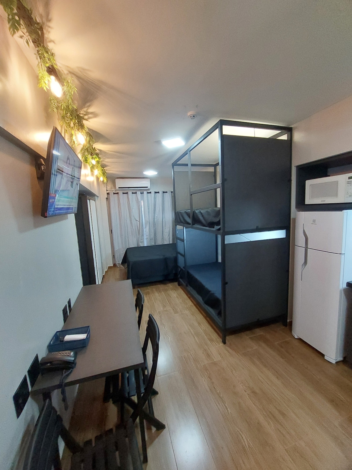 Kitnet econômica e confortável — ideal para quem quer economizar! Se você busca um espaço simples, funcional e com ótimo custo-benefício, esta kitnet é perfeita. O ambiente conta com cama de casal, estacionamento para um carro pequeno, guarda-roupas, frigobar, cozinha equipada para refeições rápidas e banheiro. É um espaço compacto, bem organizado e pensado para quem deseja uma estadia prática, pagando pouco e com total privacidade. Ideal para viagens curtas, trabalho ou descanso.
