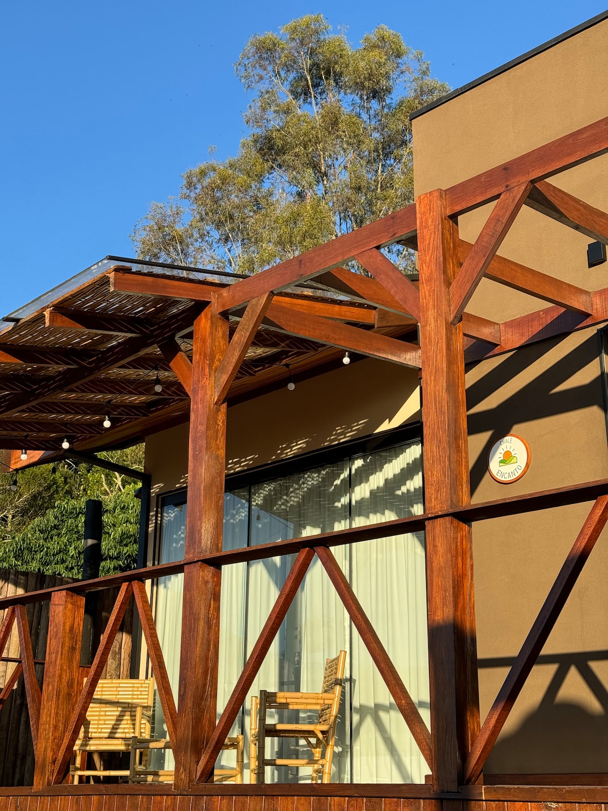 Kapcsolódj újra a természettel a SANTALENA KIRUCCANÁSON!! Az újonnan megnyitott faházunk témájú, és Amerika legnagyobb hegyére, az Aconcaguára utal. Az Aconcáguához hasonlóan és a hely épületeit követve ez a faház is tömör kőből épült, zöld pázsitos tetővel és rusztikus fával díszített padlóburkolattal. A régió legszebb naplementéi!! Magánszférával és biztonsággal rendelkező hely. Közel vagyunk a törzskőhöz, a Bau kőétterméhez, és 25 percre São Bento városától.