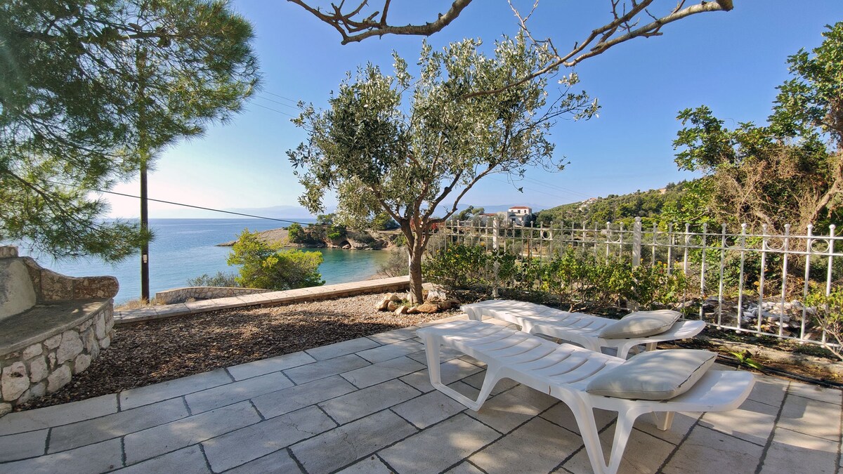 Ez egy vendéglakosztály (22 nm), 150 méterre a tengertől, a ház többi részétől független tér, parkolóval, nagy udvarral (általában gyep), székekkel és napozóágyakkal. Zárható erkélyajtóval, szúnyoghálóval és korlátlan kilátással rendelkezik a tengerre és a Proti szigetre. A lakosztály a családi ház két része közül az egyik, amely bérelhető. 2 fő és 1 csecsemő számára alkalmas (ingyenes a babaágyban)