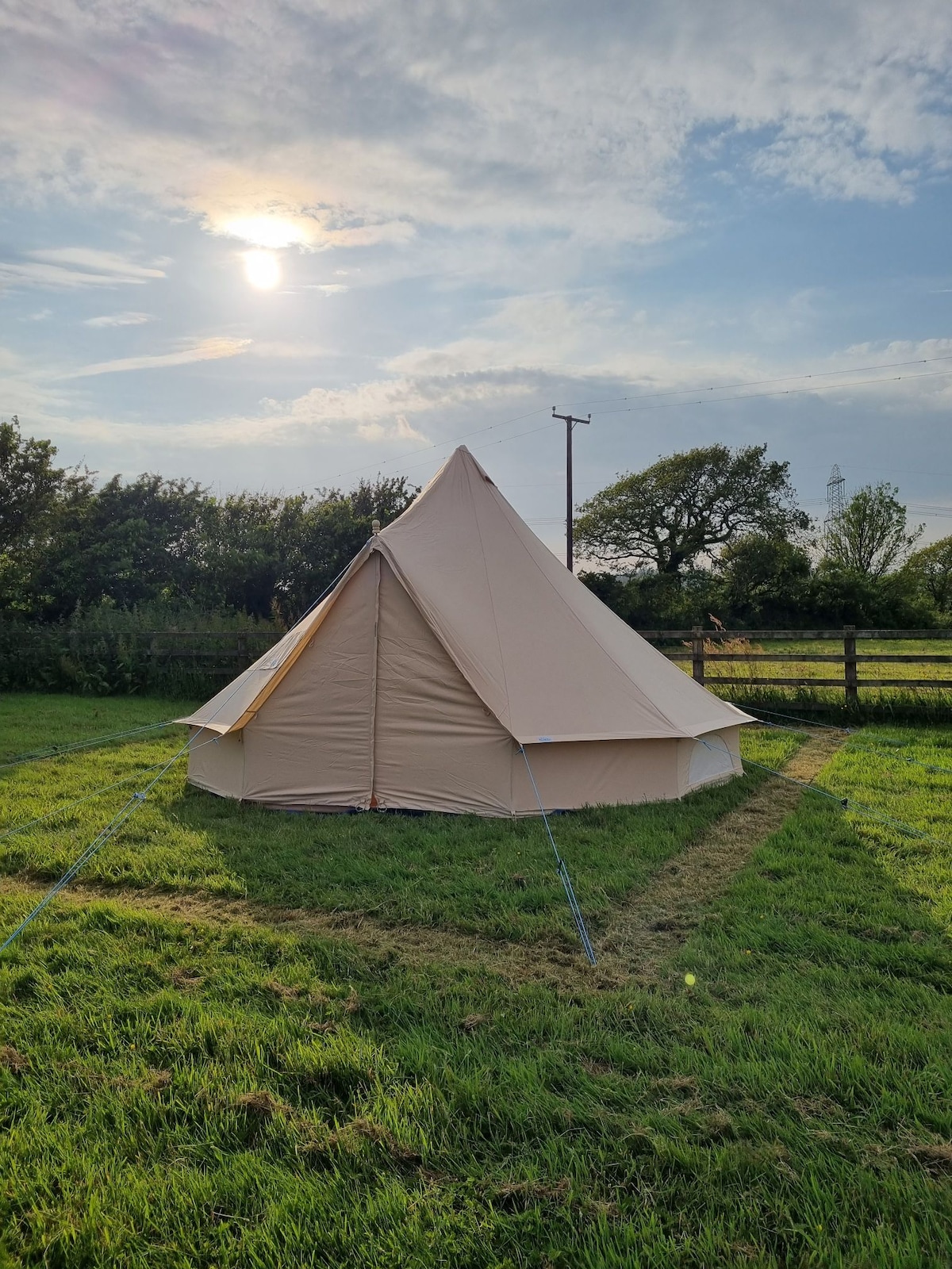 Gyere és pihenj a kempingünkben, amely három 6 méteres harangsátorból áll egy 2 hektáros mezőn. Minden sátor magas színvonalon van berendezve, saját létesítményekkel - felszerelt fedett konyha, forró zuhanyzó, mosóterület, komposzt vécé és tűzrakóhely. Tökéletes pároknak vagy családoknak. Az egyes sátrakból látható játszótér a vendégek kedvence. Élvezd Pembrokeshire-t nappal, éjszaka pedig üldögélj a tűz körül! Parkolás a helyszínen, majd meredek emelkedőn sétálva a kemping területére.
