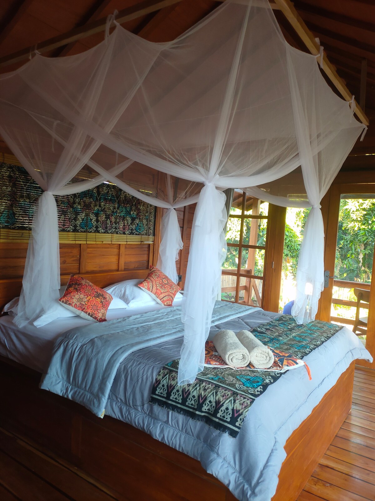 Fából épült, kétszintes kunyhónk hűvös légkörrel rendelkezik, sok mangófával körülvéve, madarak csiripelnek, mint a vadonban. Pemuteran szívében található, 6 perces sétára a strandtól, ahol korallzátonyos strand, számos helyi és nyugati étterem található. Wi-Fi, kontinentális reggeli. Légkondicionált szoba meleg zuhanyzóval, a híres Menjangan-sziget és a nyugat-bali nemzeti park közelében. Szívesen fogadunk foglalásokat olyan tevékenységekre, mint a búvárkodás, sznorkelezés, túrázás, úszás delfinekkel, túrázás, horgászat, templomnézés, Ijen-kráter és Bromo