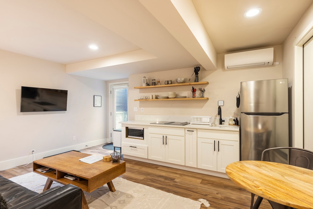Átalakított különálló garázs egy új, világos stúdióvá. Szeretek vendégeket fogadni a világ minden tájáról. A szomszédban lakom, így elérhető vagyok, ha bármire szükséged van, de tiszteletben tartom a magánéletedet. *Nincs lépcső, amely a lakásba vezet * Utcán kívüli parkolás *EV (elektromos jármű) gyorstöltő állomás *Fűtött padló a fürdőszobában *Teljes konyha *55 hüvelykes Smart TV *Légkondicionálás *Egyszerű autópálya-hozzáférés *Közel a tömegközlekedéshez