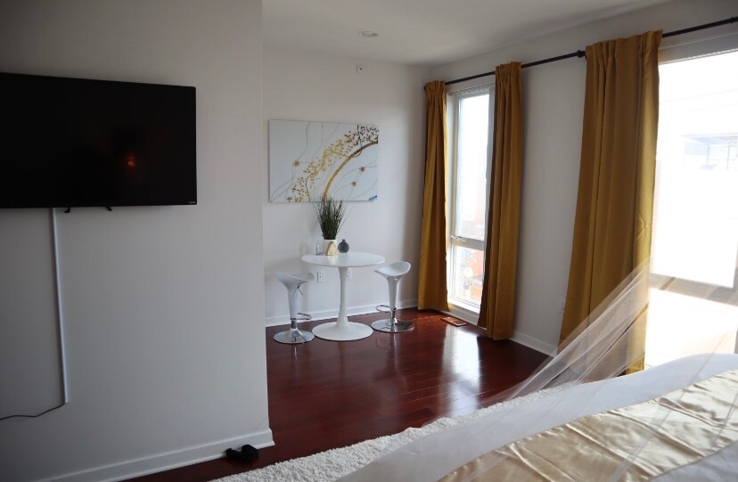 Ebben a modern lakásban 1 king méretű ágy, 1 hálószoba, 1 fürdőszoba, egy 65hüvelykes tévé a nappaliban és 55hüvelykes tévé található a hálószobában. Mindössze 3 perc autóútra található a Kongresszusi Központtól, a Chinatowntól, a Reading Terminal piactól, a bevásárlóközpontoktól, bároktól, éttermektől és bároktól. Stílusos lakásunk tökéletes menedéket kínál Philadelphia jól ismert látványosságainak felfedezésével töltött hosszú nap után, csúcsminőségű kényelmi szolgáltatásokkal és kényelmes elhelyezkedéssel.