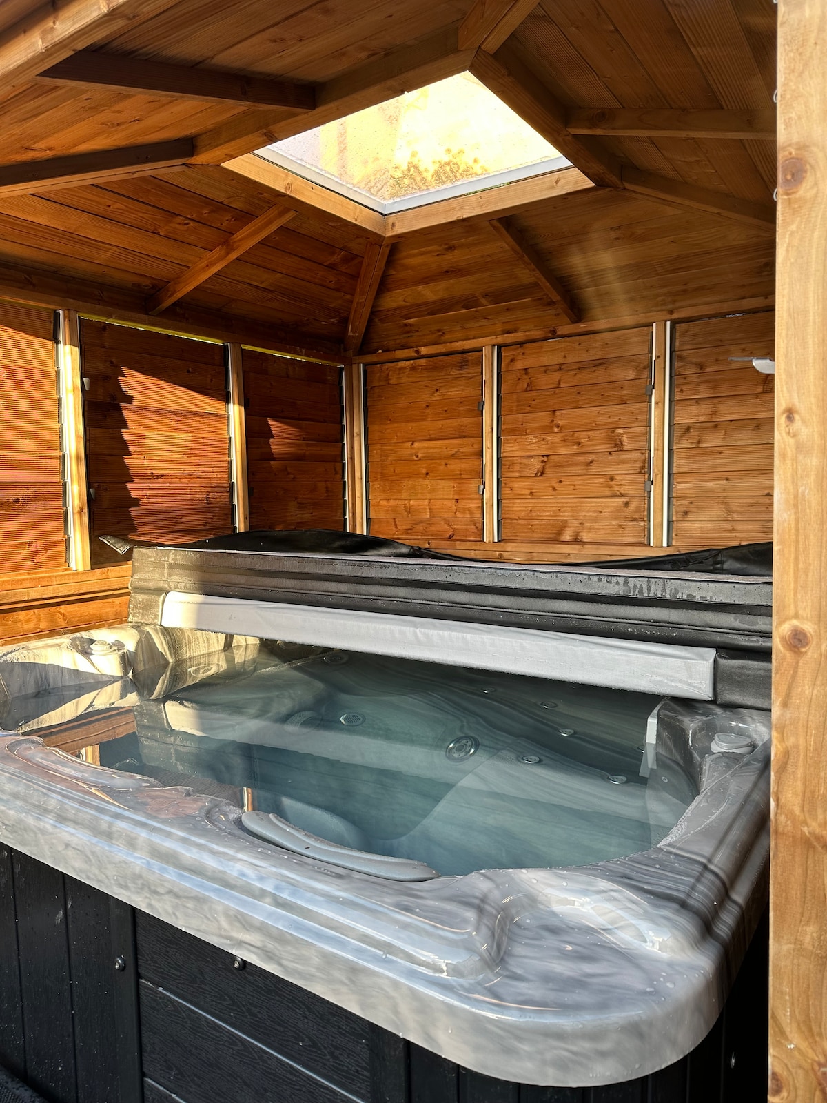 Ez a romantikus faház egy nyugodt erdő szélén található, egy gyönyörű, magántulajdonban lévő 5 hektáros kert alján, amely egy hipnotikus folyóparti vízesésre néz. Ebben a fenséges menedékhelyben lazíthatsz, pihenhetsz és feltöltődhetsz, teljes hozzáféréssel a grillezőhöz és a helyszíni szaunához. Ha a hátradőlés nem neked való, számos helyi sétát és látnivalót találsz. Autóval Wrexham mindössze 5 perc alatt elérhető, Chester 25 perc alatt elérhető, és ha szeretnél egy napot Liverpoolban tölteni, csak egy órányira van.